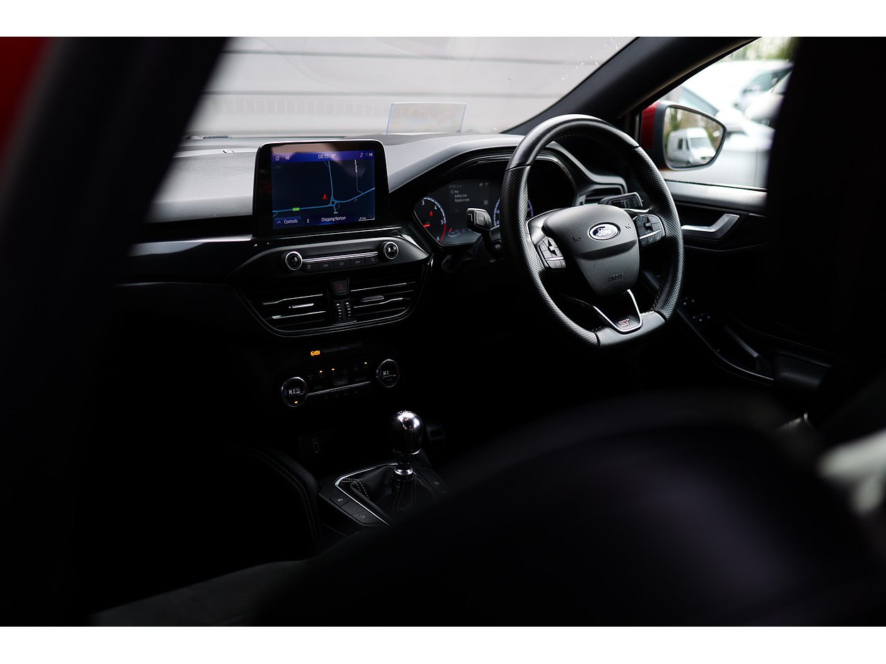 • Flat Bottomed Steering Wheel with Red Stitching
