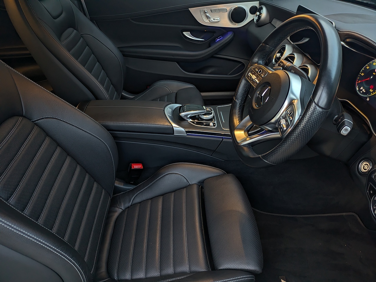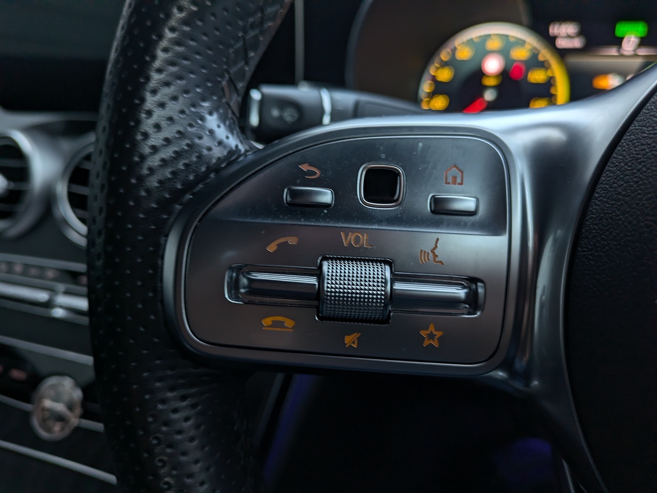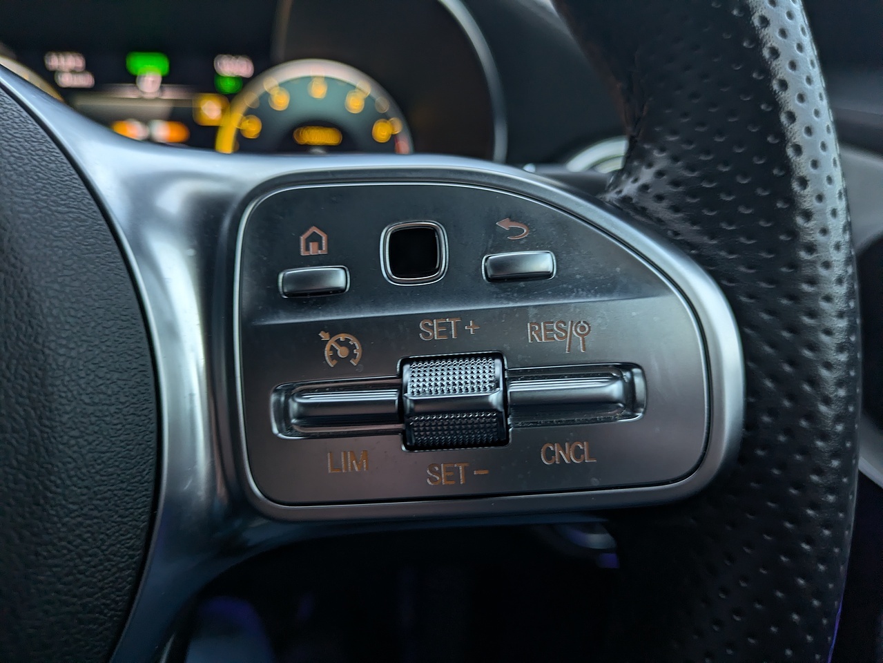 • Steering Wheel - 3-Spoke Multi-Function AMG in Leather with Flattened Bottom Section - Chrome Inserts and Perforated Leather in Grip Area