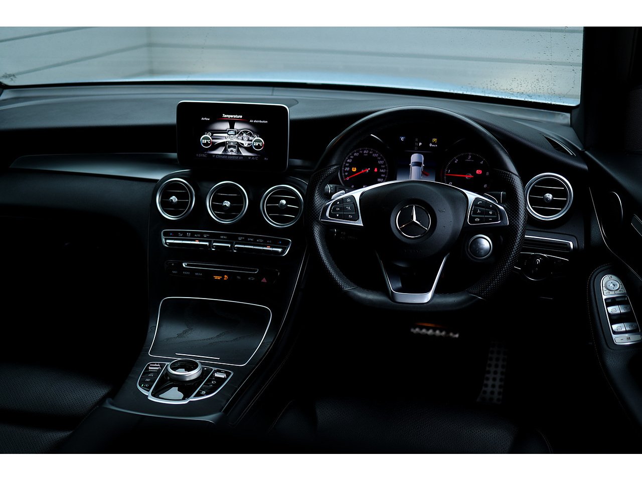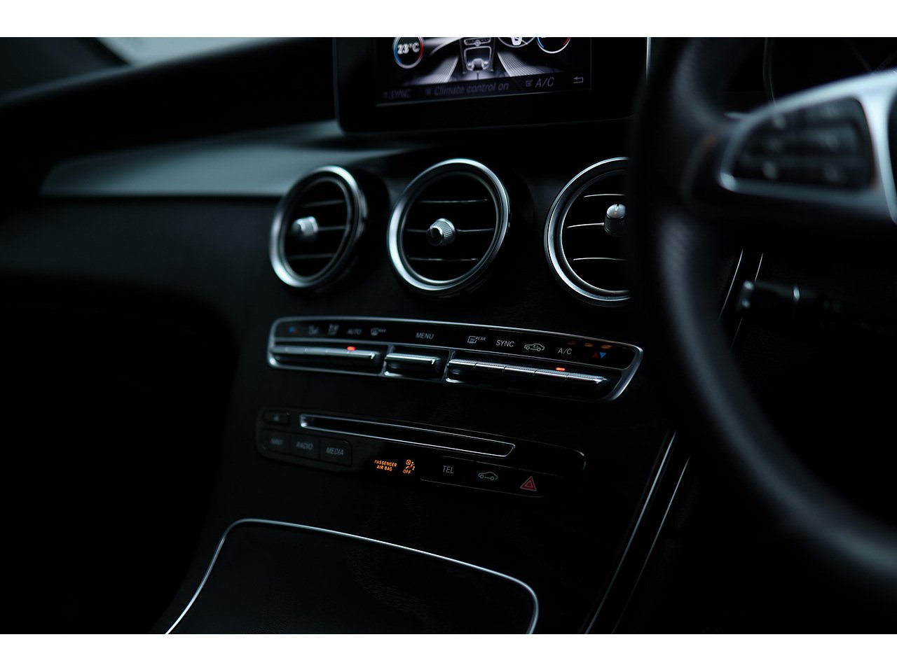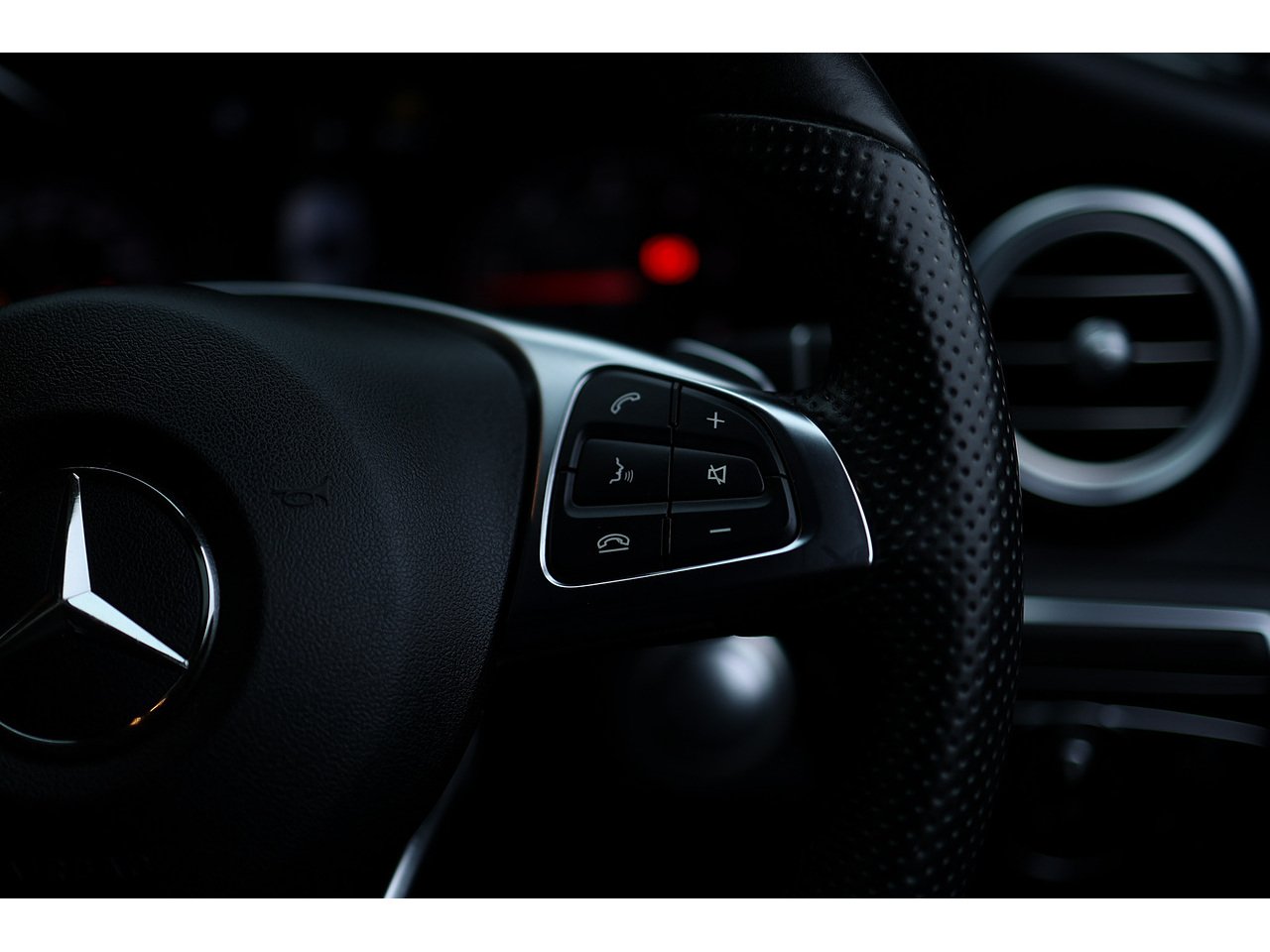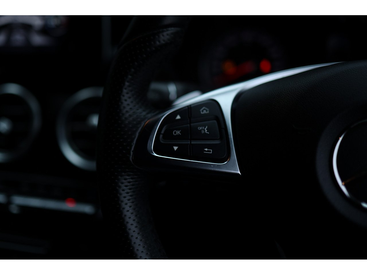 • Steering Wheel - 3-spoke Multi-function AMG in Black Leather with Flattened Bottom Section and Chrome Inserts and Perforated Leather in Grip Area