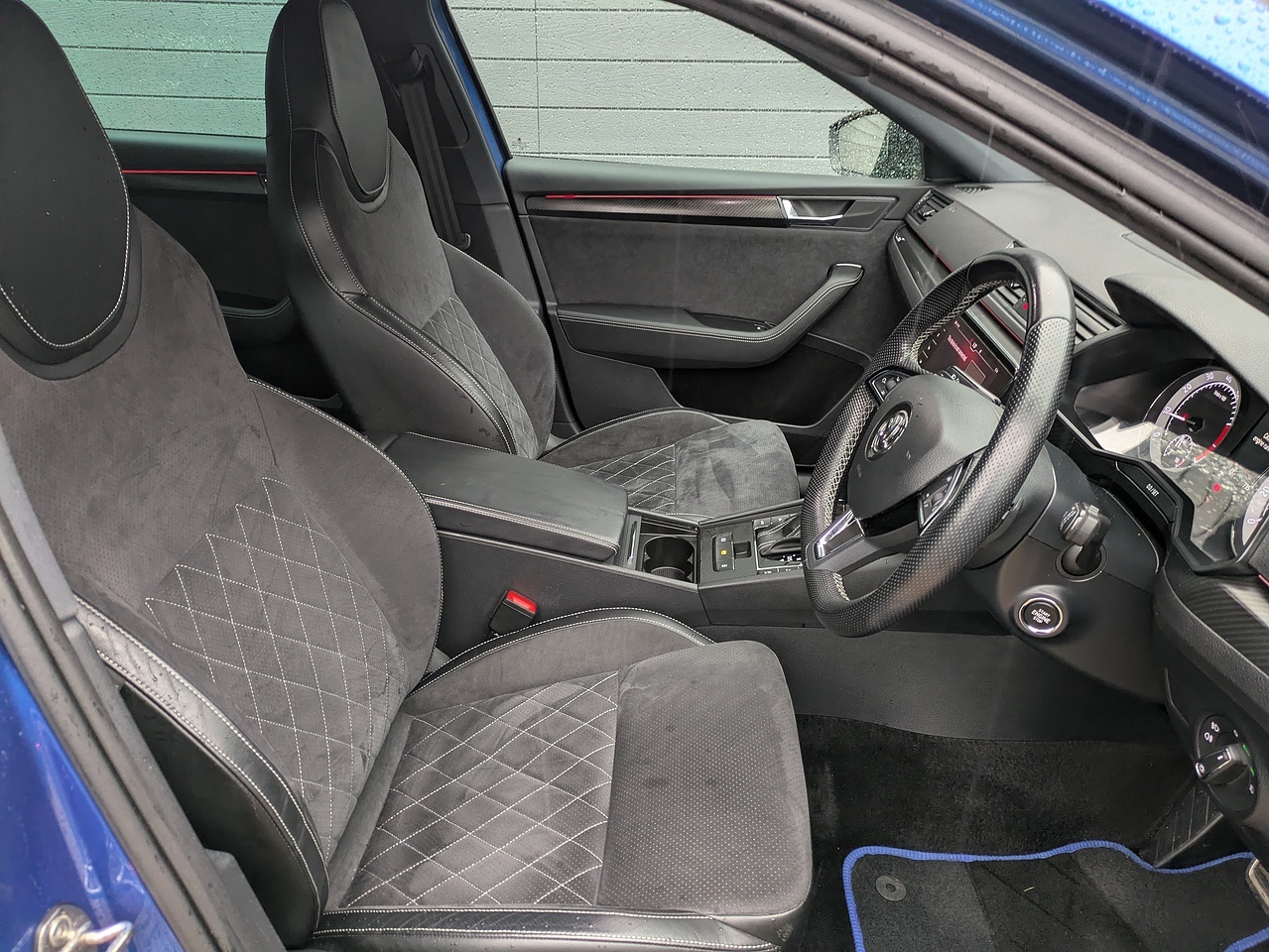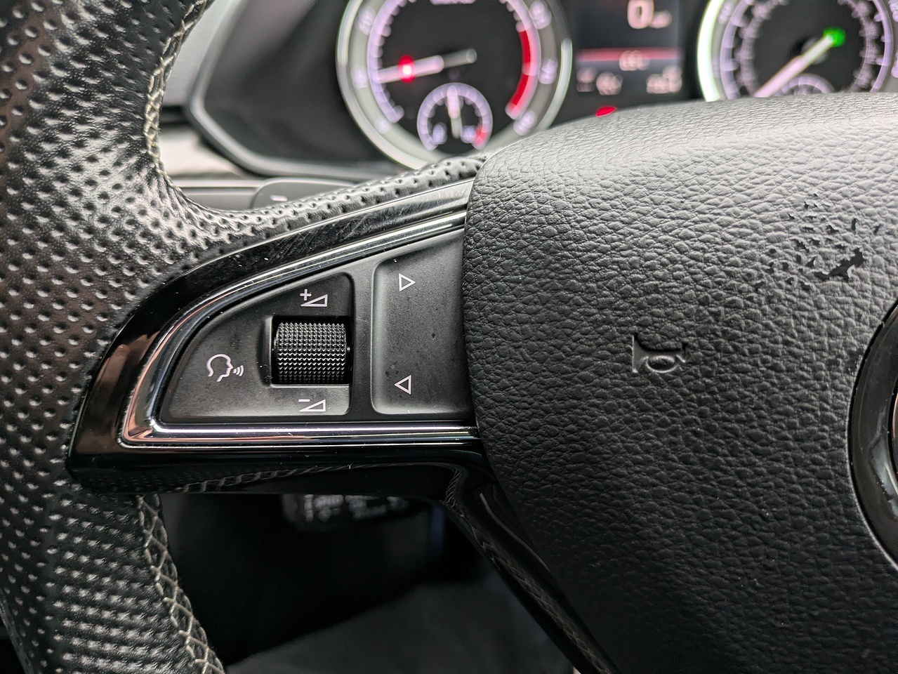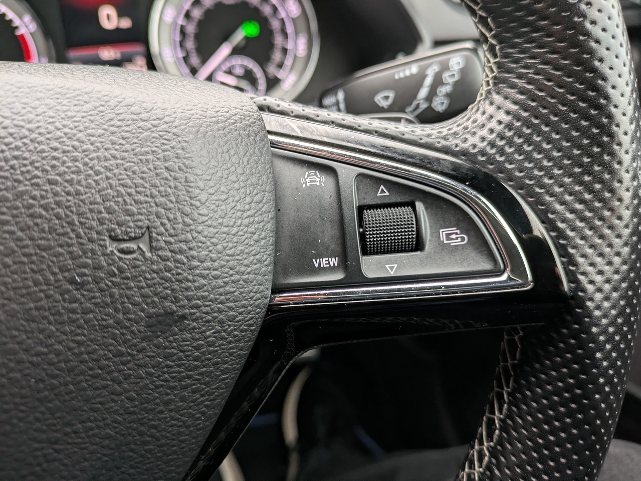 • 3 Spoke Leather Supersport Multifunctional Steering Wheel with Silver Stitching